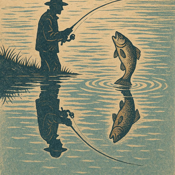 - Reflet du pĂȘcheur et du poisson sur lâeau â Apporte une touche artistique Ă lâimage.