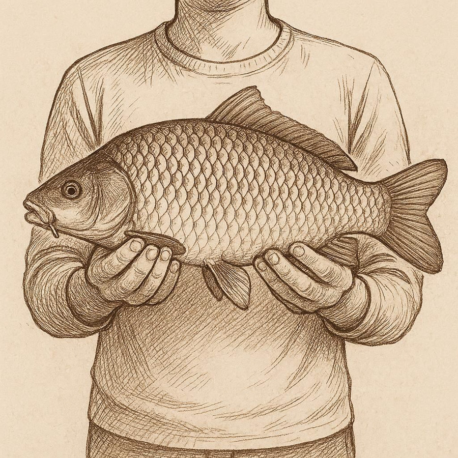 - Le poisson tenu Ă deux mains devant la poitrine â Met en valeur la taille du poisson et le visage du pĂȘcheur.